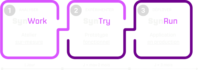 Un accès limité et gratuit à la plateforme Synrune pour les entreprises de moins de 10 personnes qui ont réalisé un premier prototype dans le cadre de notre offre d'expérimentation SynTry.
