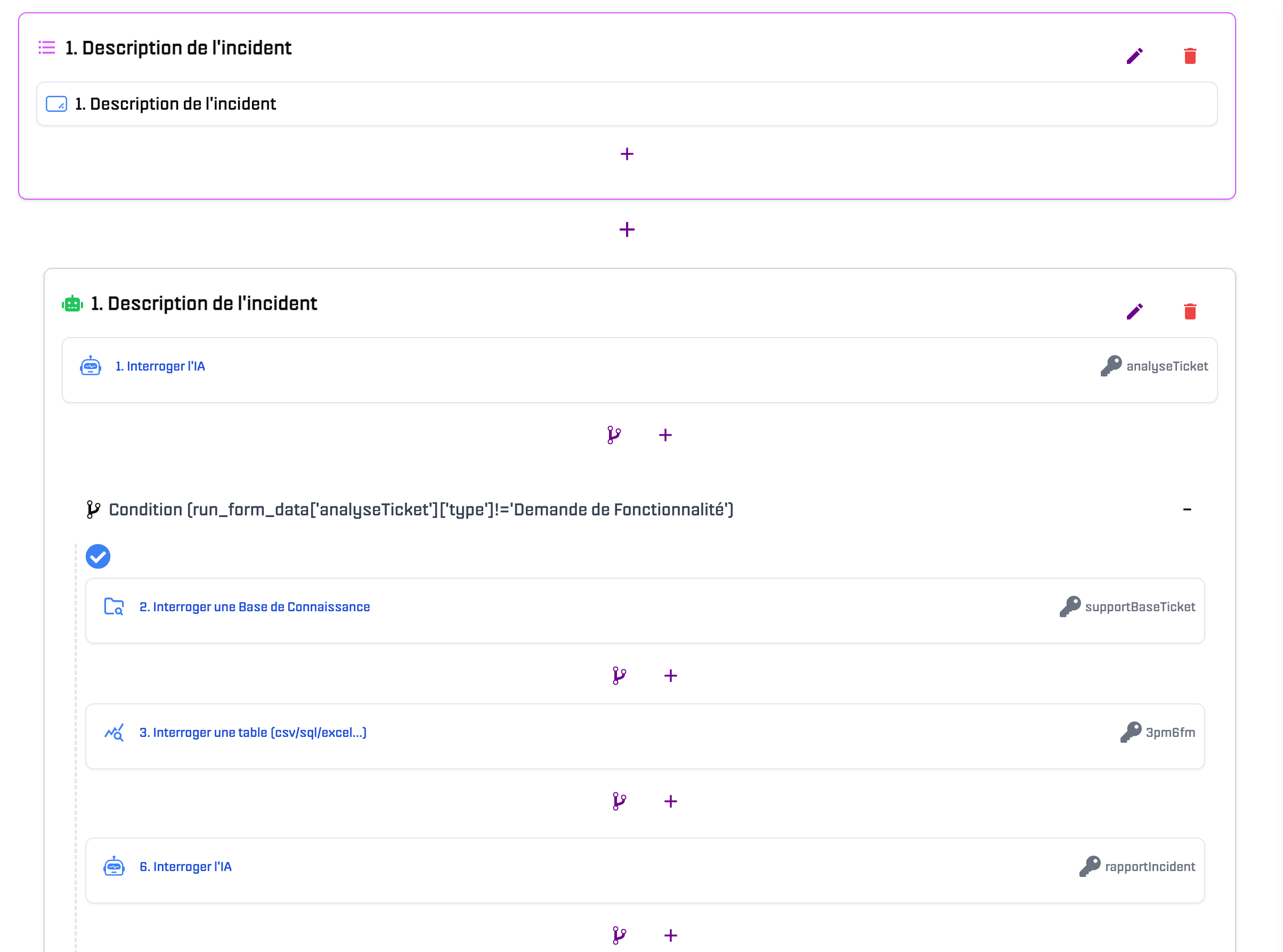 Conception des Applications IA à partir d'un éditeur graphique : Formulaires Entrées/Sorties, système multi agents (outils, prompts et scripts...).