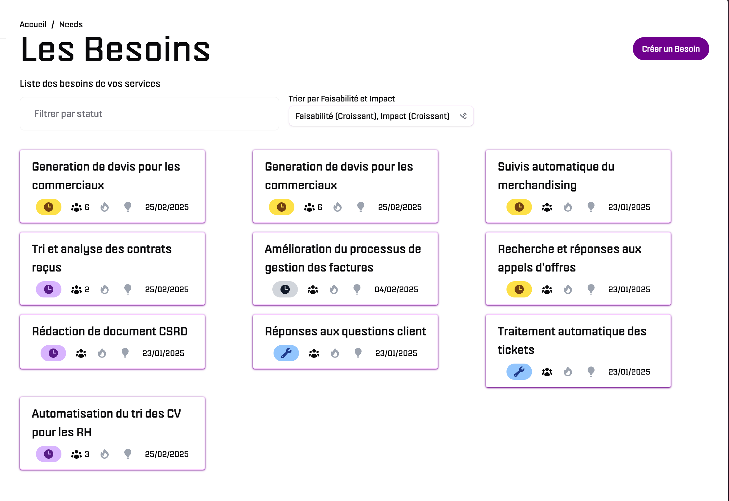 Outil pour centraliser les besoins, identifier et prioriser les cas d’usage, puis évaluer la réalisation d’une App IA.